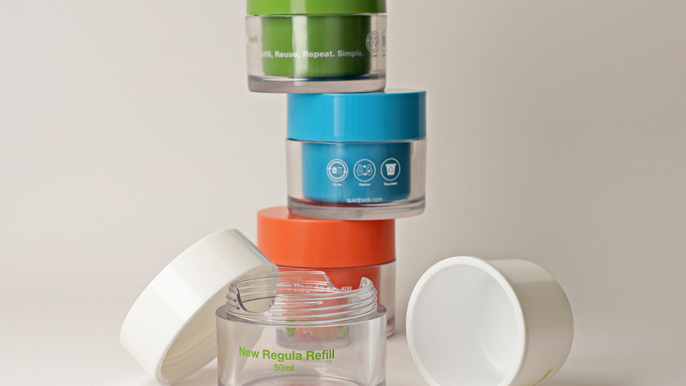 Quadpack Steps more in his way to a positive impact with 'Regulate', his more sold range of pots and products airless. Like answer to the demands of the market and of the consumer, that demands containers of big quality more intuitive and sustainable, launch 'Regulate Refill Jar': a pot for cosmetic of recyclable luxury, recargable, monomaterial and easy to use.